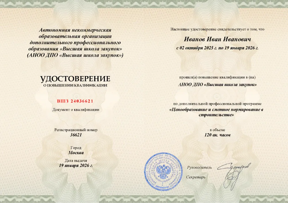 Курс повышения квалификации объемом 72 академических часа разработан для инженеров-сметчиков, специалистов по ценообразованию и сотрудников отделов капитального строительства. Обучение организовано дистанционно в Анадыре. Программа детально разбирает структуру сметной стоимости, расчет затрат на ресурсы и материалы, использование базы ГЭСН и работу с системой ФГИС ЦС. Слушатели освоят актуальные методики нормирования трудозатрат и специфику разработки смет в современных рыночных условиях. Проверка знаний максимально упрощена: онлайн-тест до 10 вопросов без лимита времени и количества попыток (99% успешно сдают с первого раза). Никаких защит и написания рефератов. Актуальный мониторинг подтверждает, что это наиболее бюджетный вариант обучения в своей нише. Удостоверение оформляется за 1 день, а сведения в реестр ФРДО заносятся непосредственно в день выдачи.