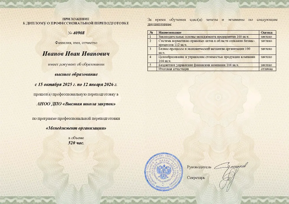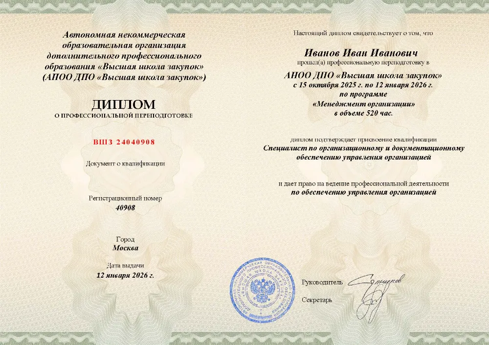 Данный курс профессиональной переподготовки, включающий 520 академических часов материала, предназначен для руководителей и специалистов, нацеленных на комплексное изучение управленческих процессов. Учиться можно полностью удаленно в Анадыре, совмещая занятия с работой. Программа охватывает стратегический менеджмент, экономику предприятия, управление персоналом и финансами, а также психологию лидерства и использование ИТ в бизнесе. Аттестация максимально упрощена — это онлайн-тест до 10 вопросов без ограничений по времени и количеству попыток (99% успешных сдач с первого раза). Рефераты и защиты исключены. Согласно анализу рынка, это самый бюджетный курс среди аналогичных программ. Диплом выдается за 1 день, а запись в ФРДО появляется в день выдачи документа.